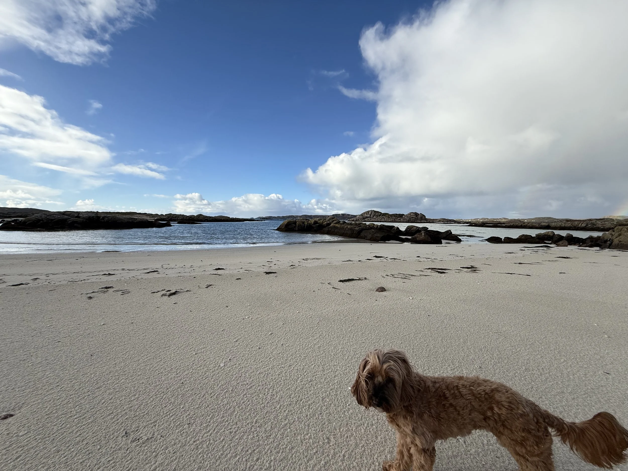 The most common things that people say when they find out I’m a teacher are, “The holidays must be good,” and “I could never do that.” And I just think (I don’t bother arguing my point out loud anymore), “I need the holidays to make up for the 50+ hours I work each week,” and, “I love it and couldn’t imagine doing anything else.” Anyway, the holidays mean that every six weeks or so I can jump in my campervan (a converted Mercedes Sprinter called Aoife), with Mr Andrews (that’s how the crafty teacher refers to her husband in class) and Peppa the cockapoo and take to the road. This October half term the destination was Scotland- the Isle of Mull to be exact. We usually visit Scotland during the Easter holidays, spending the past two years on Uist, where we’ve been treated to the most beautiful scenery and rare sights in nature I could imagine: white sanded beaches and white tailed eagles to name a few. October is usually mid wales to mooch along rocky beaches and see red kites soaring across the skies. This year though we thought we’d give Mull a try, partly so that Mr Andrews could visit Tobermory and pretend he was Archie the Inventor or PC Plum. The weather wasn’t great but we made the most of it and after visits to Calgary beach, Lochbuie, Fidden beach and Loch na Keal I had collected some shells, sea glass and driftwood to create some pieces of art with.